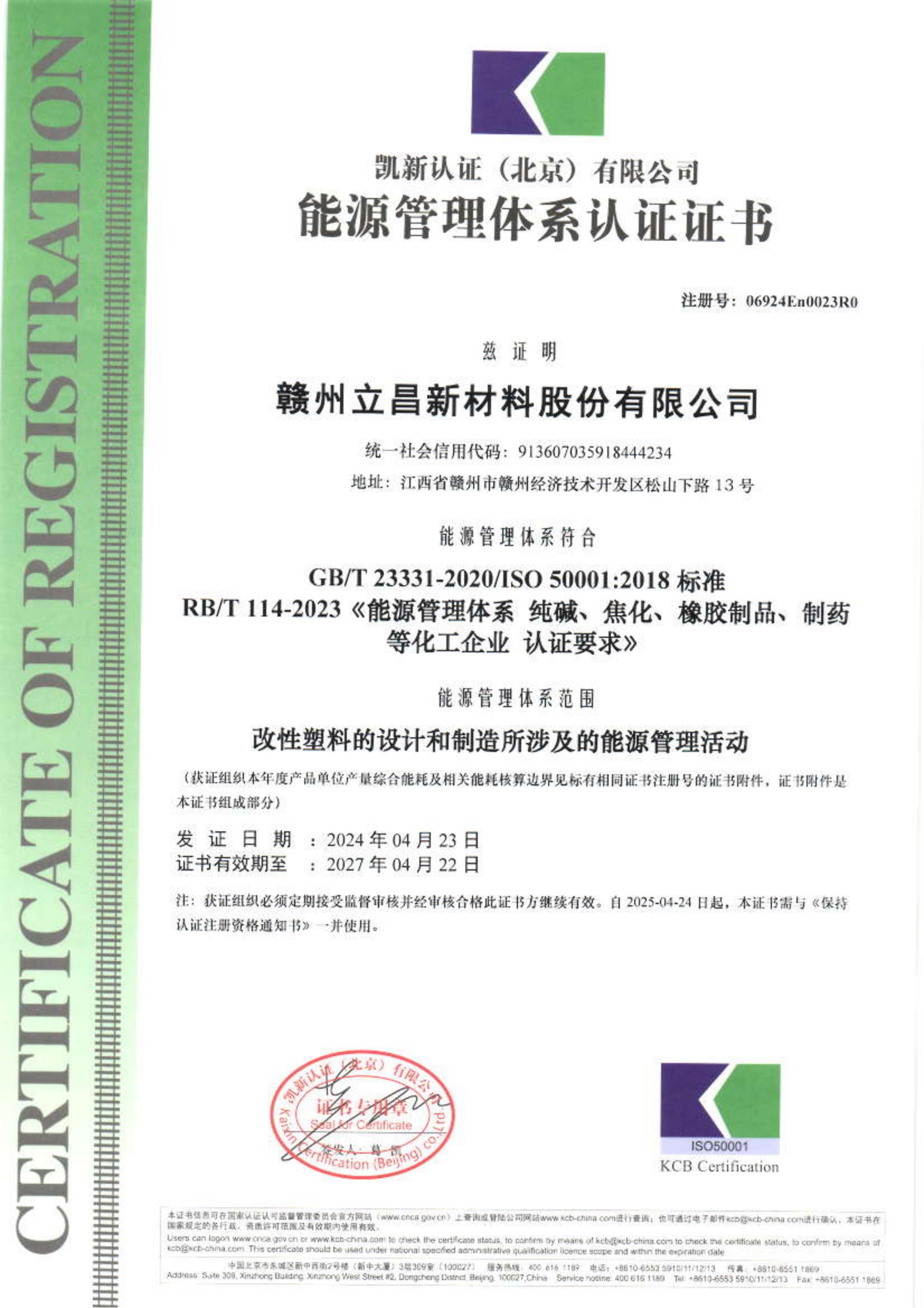贛州立昌新材料股份有限公司 地址:江西省贛州市經(jīng)濟技術開發(fā)區(qū)松山下路13號